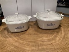 60’s Lot of 2 Blue Cornflower Corrningware Casserole Dishes with lid 1.75 & 2.5