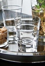 Crate & Barrel Old Fashioned Low Ball Glass Tumblers Gold Wave Colored Dots