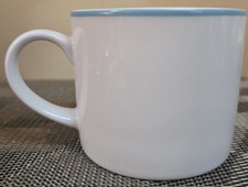 Crate & Barrell White Coffee Cup Mug with Blue Trim at Rim; 2.75" Tall