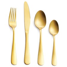 24-Piece Silverware Set, Stainless Steel Matte Gold Flatware Curlery Set, inc...