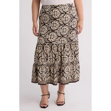 MAX STUDIO Tiered Maxi Skirt BLACK/ SESAME DAMSK SHELL Black Tan Festival 1X NWT