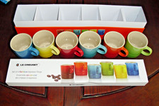 LE CREUSSET set 6 rainbow Espresso Coffee mugs stoneware brand new original box