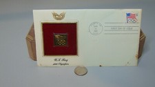APR 21 1991 FIRST DAY ISSUE US FLAG 1992 OLYMPIS 22K GOLD PLATED REPLICA STAMP