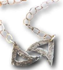 Modernist Necklace Hammered Sterlimg Silver Geometric Design Artist Signed