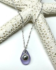 925 Sterlinf Silver Minimalist Handmade Lavender Seaglass Necklace