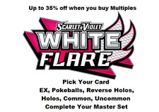 Pokemon White Flare-Pick your card - Reverse Holo, Common Pokeball & Masterball
