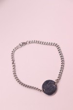 Stainless Steel Circle Charm Bracelet Simple Curb Chain Silver Tone 21cm