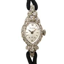 BULOVS Antique Watch Manual Winding 14K WG White Gold Diamond Silver USED