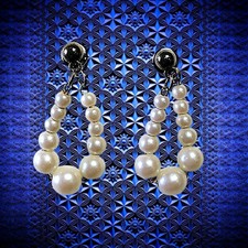 Vintage Faux Prarl Dangle Drop Earrings 1" Inch Pierced