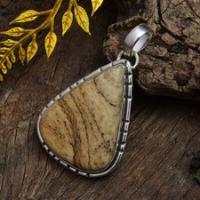 Natural Picture Jasper 925 Sterling Silver Christmas Gift Pendan tSize-2.1"AJ-7