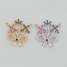 Gold Bow Charms,18K Gold Filled CZ Bow Pendan for DIY Jewelry Making Supply