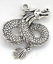 2 Dragon Antique Silver Pewter / Alloy Large Pendnat 46x39mm