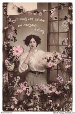 B4-78510 French RPPC Postcard WWI "En pensant a lui" girl's vision of soldier
