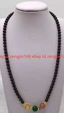 Fashion Beautiful 6mm Black Onyx Roundy Gemsone Beads Pendabt Necklace 18''