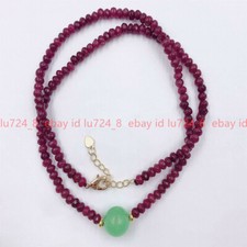 Faceted 2x4mm Red Jade Roundel Gems & Green Jade Beads Pendabt Neckalce 16-28"