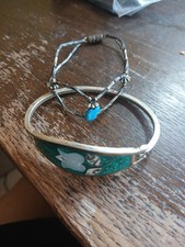 Inlaid Turquouse Sterling Ring jewelry lot k - Excellent Condition - Size 7.75