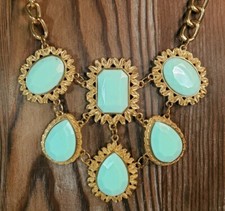 PREMIER DESIGNS SILVER-TONE 3 STRAND CHAIN NECKLACE TURQUOUSE LUCITE PENDANT