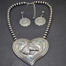 Equestrian Faux Turquouse Necklace Earring Set Horse Head Heart Shape Pendant