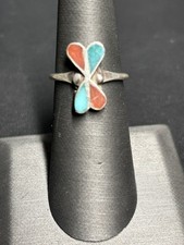 NATIVE AMERICAN WITH CORAL AND TURQUOUSE INLAY BUTTERFLY RING SIZE 6