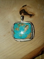 Handcrafted Sterling Silver Signed Turquoisr Pendant 925