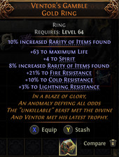 Path of Exile 2 Standard League - UNIQUE Ventor's Gamble Gold Ring