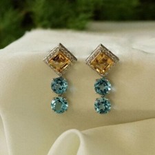 2.00Ct Simulated Citrine & Blue Topaz Drop Earrings Whitw Gold Finish