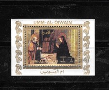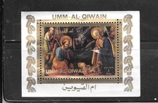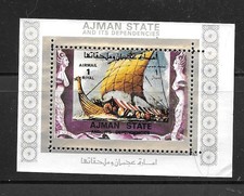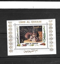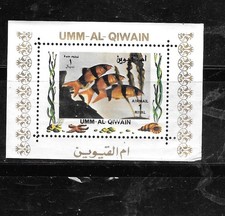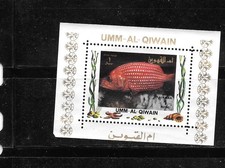 UMM AL QIWAIN STRIPPED BROWN FISH WHITE MINI SOUVENIR SHEET MNH XF OLD STAMP