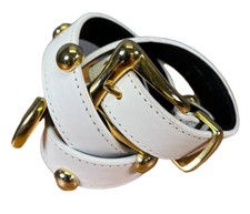Jessica Rich Monaco Stiletto Sandal Ehite Leather Gold Chain Women EUR 36