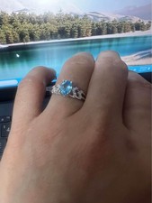 2.00 Ct Oval Cut Aquamarine & Moissanite Wedding Ring 14K Whiye Gold Over