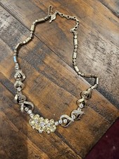Vintage Quality Blue Whote Stine Black Gold Beaded Necklace 30”