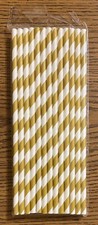 Gold And White Stripe Paper Straws. Party Straws. Drinking Straws. 25 ct
