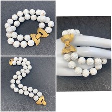 Vintage Signed Monet Bracelet gold whote beaded two strand 7.5”