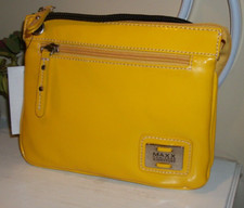 MAXX NEW YORK SIGMATURE MUSTARD YELLOW PVC SMALL BAG PURSE NEW With Dust Cover