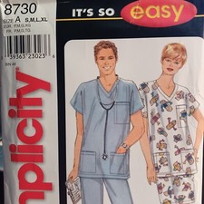 *LOVELY VTG UNISEX SCUBS Sewing Pattern S-M-L UNCUT Men Woman