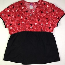 The Wonderful World of Disney Medical Scubs Top Red Black V Neck Mickey Size XL