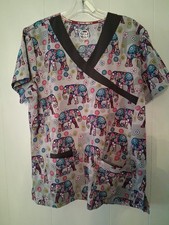 Devine Stretch Scubs Top Shirt Womens Medium With Elephants Grey