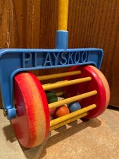 Vintage Pkayskool Colorol Wagon Wooden Pull Along. 13" L X 10" W X 3.5" H