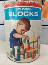Original 1974 Vintage Playskook letter wood blocks Learning Toy Tube 29 Blocks