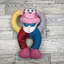 Vintage Pkayskool Touch Ems Monkey Rattle Plush 8" Baby Toy Animal 1986 80s