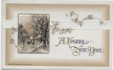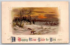 John Winsch~Deer On Hill New Year Wishes~Vintage Postcard