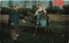 Old postcard Soigne l'ane en pensant a moi FRANCE FOLKLORE (789279)